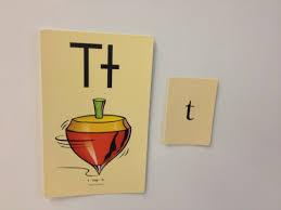 | The picture card for letter t helps to remember the sound it makes: t, top, /t/. |